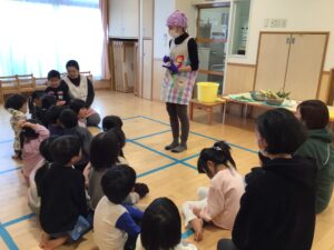 行いました。月の始めに立派な大根を頂いてきたところから始まっていました。皆で洗って干した大根。だんだん縮んでいく様子を見ていた子ども達。