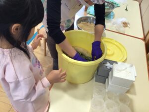 「ぐにゃぐにゃだね」と気づいた変化を教えてくれていました。